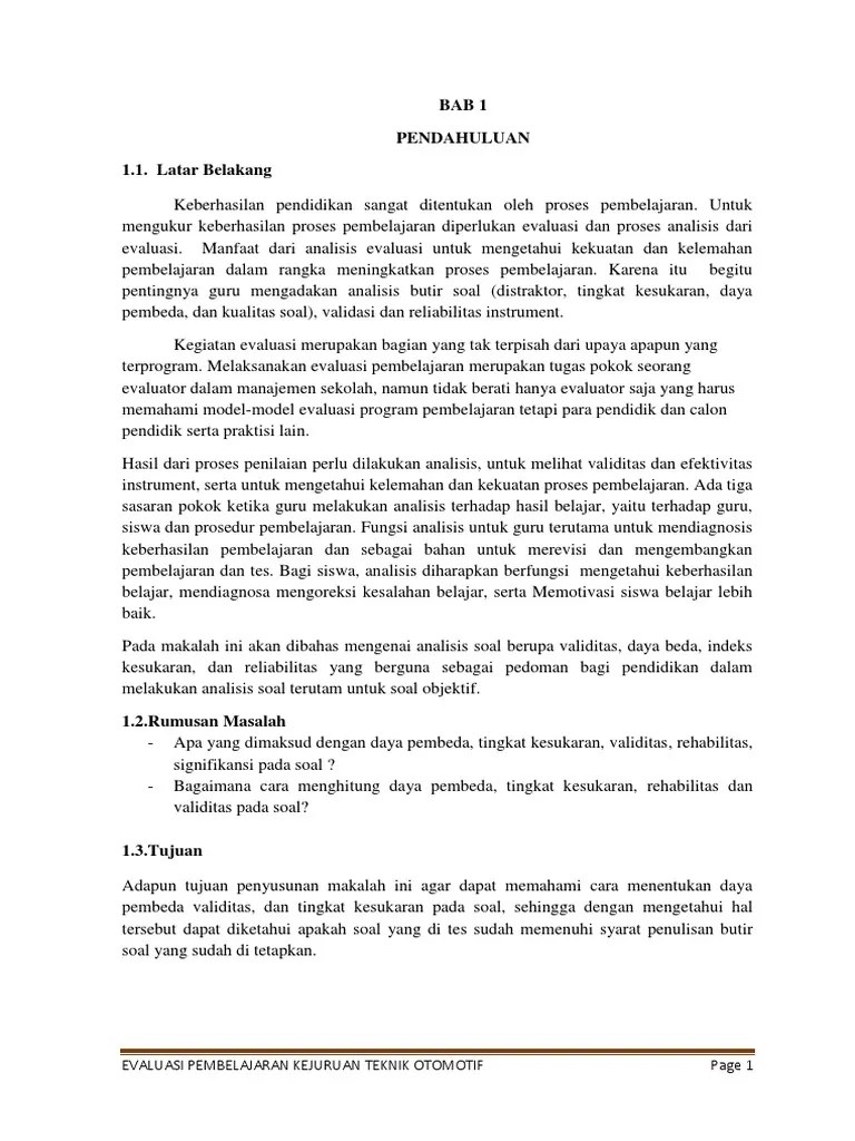 Bagi guru, sebagai pengenalan konsep terhadap pembelajaran . Daya beda adalah analisis yang mengungkapkan seberapa besar butir tes. Analisis tingkat kesukaran, daya beda butir soal . Cara penilaian yang sering dilakukan guru adalah dengan menggunakan tes. Validitas, reliabilitas, tingkat kesukaran, daya pembeda, dan keefektifan.